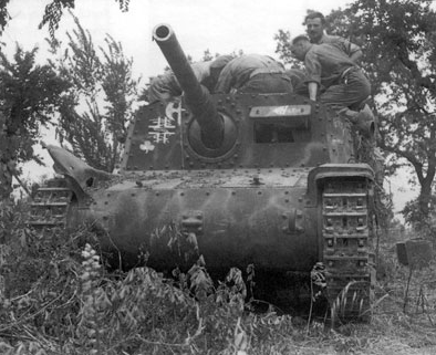 "Exiting Cut-throat Gorge" -- Placed to the north of the French Expeditionary Corps, the mission of the 1st Division de Marche lnfanterie, as part of Operation "Diadem" was to cover the flank between the Garigliano and the Liri Rivers. Heir to the 1st Free French Brigade, renowned for its stand at Bir Hakeim, the unit always preferred the title "Free French Division." But like their comrades in the CEF from the Army of Africa, it initially met strong German resistance. This was particularly the case for the armored group, which strengthened the organic elements of the CEF with American tanks. They crossed the Garigliano on the night of 11th May to crush the defenses of the 71st Infantry Division. Several tanks belonging to the 8th Regiment of Chasseurs d'Afrique, bogged down in soft ground at the end of the “cutthroat“ gorge. Nevertheless, the next day, the second echelon of the group removed this blockage at the Marroni defenses which led to the village of Sant'Appolinare.Attacker: Free French / American (Elements of 22 Bataillon de Marche Nord-Africain, 1er Bataillon du Génie, 1er Régiment de Fusiliers Marins, 3e Régiment de Spahis Marocains, 8e Régiment de Chasseurs d'Afrique and 757th Tank Battalion)