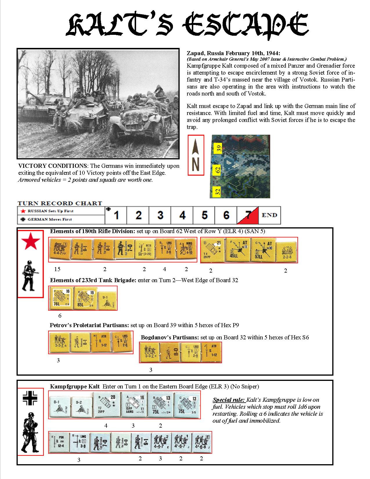 | Misc Rules: | A: No sniper. German AFVs do dr at each stop - a roll of 6 means immobilzation (out of gas) |