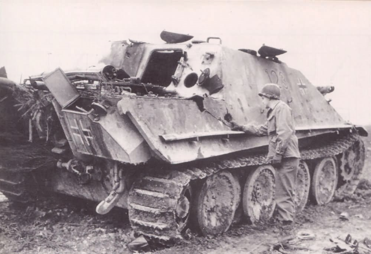 Jagdpanther Ausf.G2 "123" of 'Kampfgruppe Paffrath' 1./ sPzJgAbt. 654. Knocked out during the battle of Ruhr pocket, near the village of Ginsterhahn