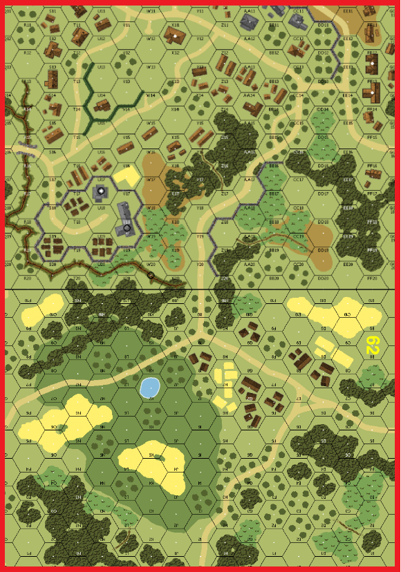 | Misc Rules: | PTO, LJ (Exc: brush remains brush, roads/bridges exist, no huts) D: lose HIP by Turn 5 |