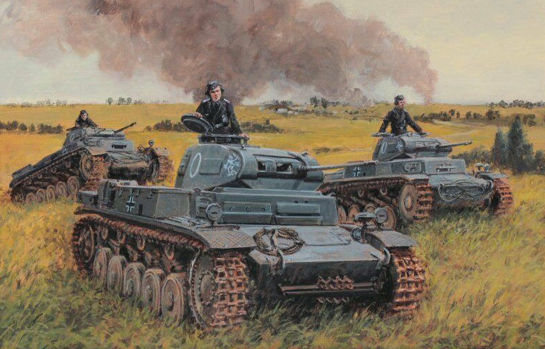 The 35th Panzer Regiment led the German advance into Belgium. By 9:15 A.M. the 35th Regiment had broken through the Belgian defense zone in the Tongres area despite Allied air attacks. In classic blitzkrieg style, the defenders were attacked from the rear, disrupting their lines of communication. That afternoon, the 35th Regiment was ordered to change direction, to the southeast, in order to surround and cut off the Belgian troops defending Liege. Late that same afternoon, two French Panhard reconnaissance cars were to temporarily disrupt the plans of the 35th Panzer Division. Achieving complete surprise, the Panhards quickly destroyed one of the lead panzers before the Germans could react. This minor ambush so surprised the Germans that they halted their advance and went to laager for the night. This action allowed several Belgian units to escape the German advance.Attacker: French (8th Cuirassiers, 2nd Division Legere Mechanique)