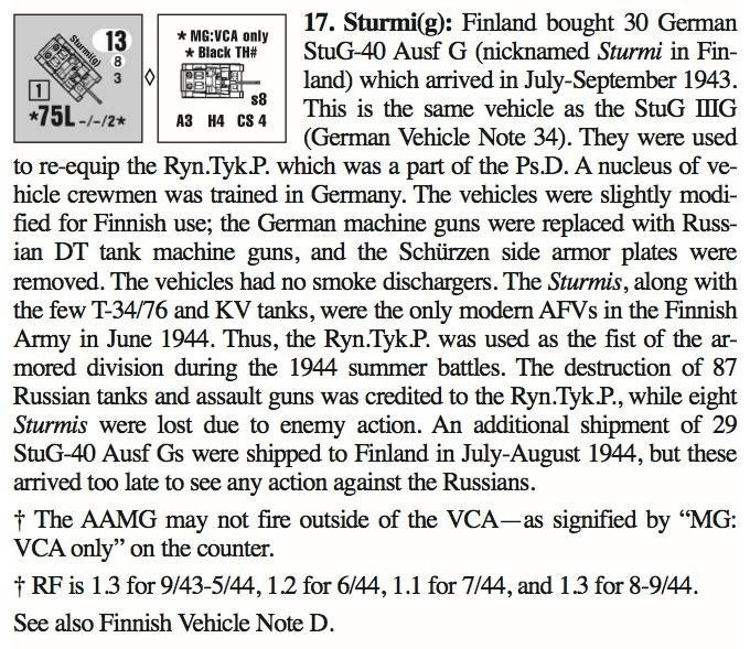 | AFVs: A:11 Pitkaputkinen Sotka(r) Sotka(r) Sturmi(g) x 6 KV-1 M42(r) HT Postijuna(L)(r) MT x 2 |