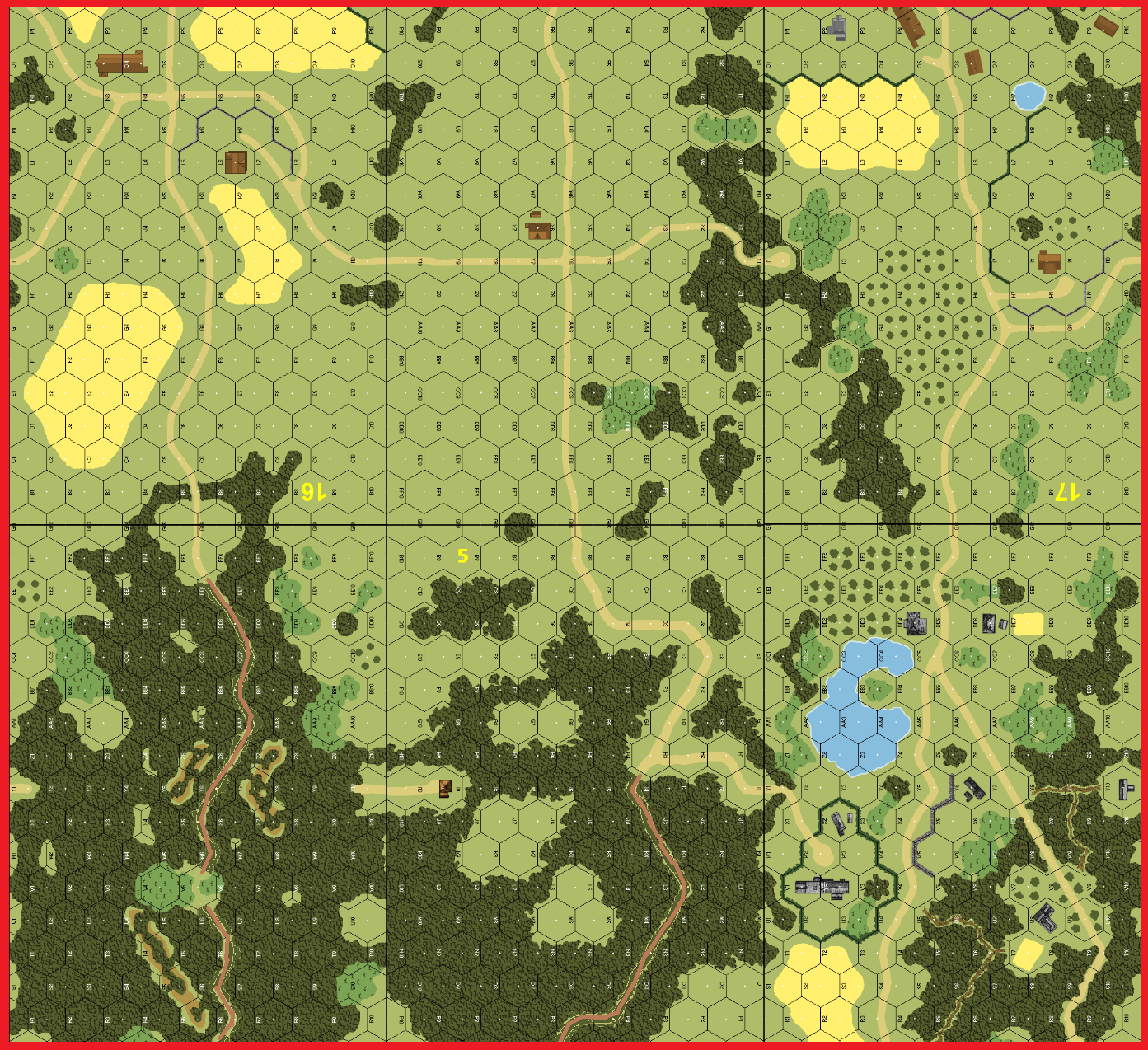 | Misc Rules: | Woods-Roads on bd 52 and 5 are Paths |