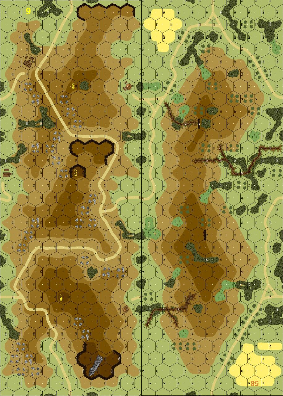 A very fun scenario with lots of options and lots of hills. Italian artillery devastated the attacking Germans (three CH's in a single harassing fire FFE) and the Germans never really threatened the main Level 4 hill/building cluster. Was not able to get my animal-packed gun into the fray...need to bust ass to get it somewhere useful and start unpacking...three turns to get that bad boy into the fray. Overall a very enjoyable scenario,