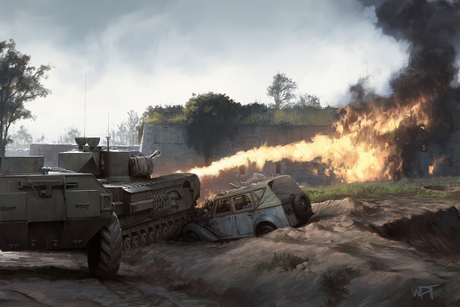 The 29th Infantry Division could feel that the campaign for Brest was reaching a climax but there was still a significant amount of frustration at divisional headquarters with the slow progress and general attrition of trained fighting men from combat losses. Due to casualties and replacements, the “29, Let's Go!” Division was not the same one that had landed at Omaha Beach. While the Germans in the Brest Pocket were being squeezed, General Gerhardt, the Division Commander, knew that there were still fanatical Fallschirmjager in front of him occupying excellent defensive terrain. Once such place was Fort Montbarey, which had stymied the 2/115 for several days. The combination of the fort, artillery, and local counterattacks had caused the Americans significant losses. Something different needed to be tried if the 29th was going to push on to Brest.Attacker: American / British (Reinforced elements I/116th Infantry Regt., 29th Infantry Division & British B Sqd, 141st Regt, RAC)