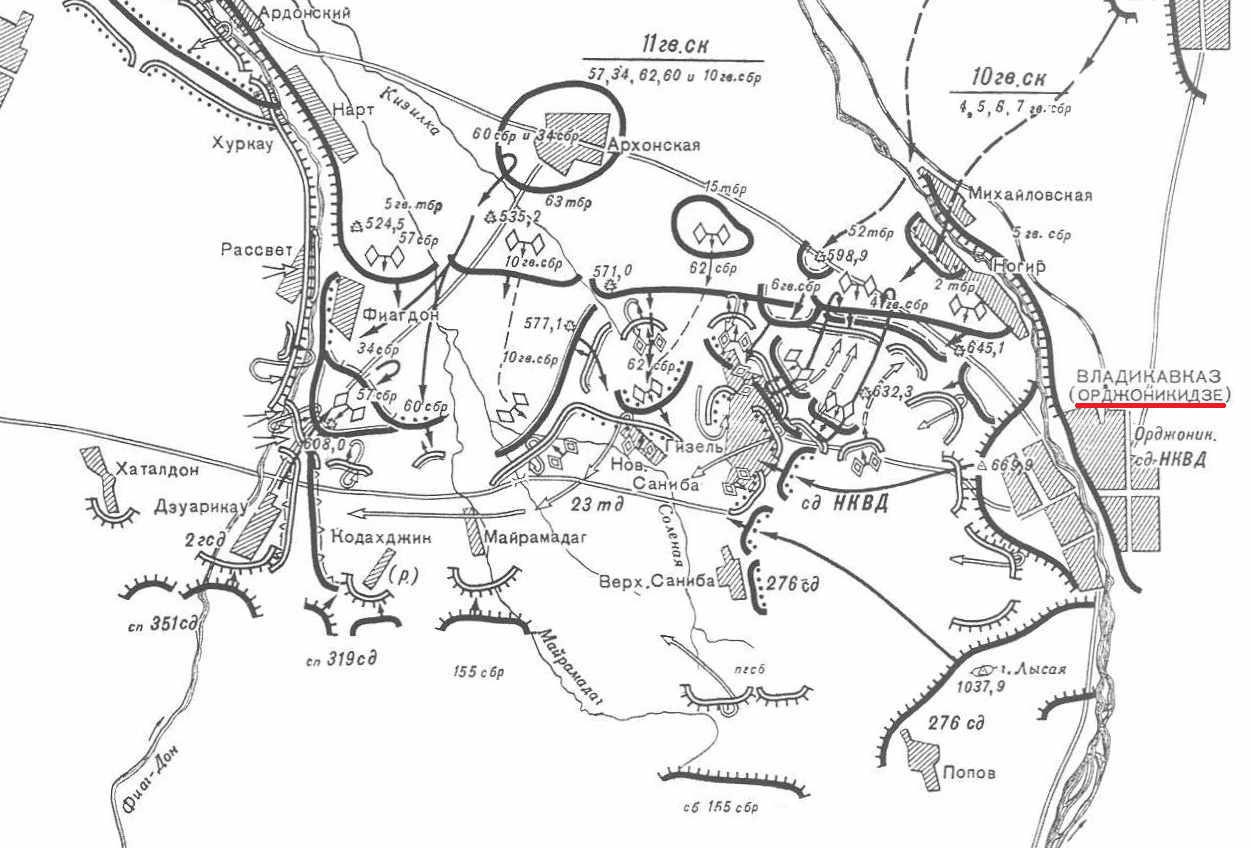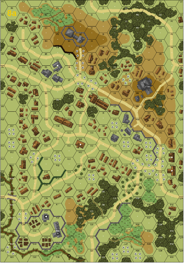 In the German campaign into the Caucasus, 13.Panzer of German III Panzer Korps reached what would be the farthest point to the southeast reached by the German military when it was halted by Soviet forces 5 miles outside Ordshonikidze, Azerbaijan -- The 7th Guards Rifle Brigade is defending the board 8a village with infantry and Lend Lease Lee and Valentine tanks against an attack by the 13th Panzer Division that is running out of fuel.Attacker: Russian (7th Guards Rifle Brigade, 5th Guards Tank Brigade, 6th Guards Rifle Brigade, and 11th NKVD Division)