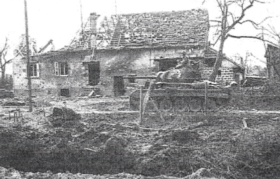 The 30th Infantry Division had crossed the Roer River and was advancing toward the town of Steinstrass. The shattered remnants of the 363rd Volksgrenadier Division fell back from the Roer and were desperately trying to defend a line of strongpoints covering newly laid minefield around the Hambach Forest. The 119th Infantry Regiment was to clear the Hambach Forest starting at 1630 hours. New M-24 Chaffee tanks, along with a few Sherman flail tanks from the British 1st Lothian Border Yeomanry joined the attack.Attacker: American / British (1st Battalion, 119th Infantry Regiment and C Company, 744th Light Tank Battalion, 30th Infantry Division and elements of the A Squadron, 1st Lothians Border Yeomanry)