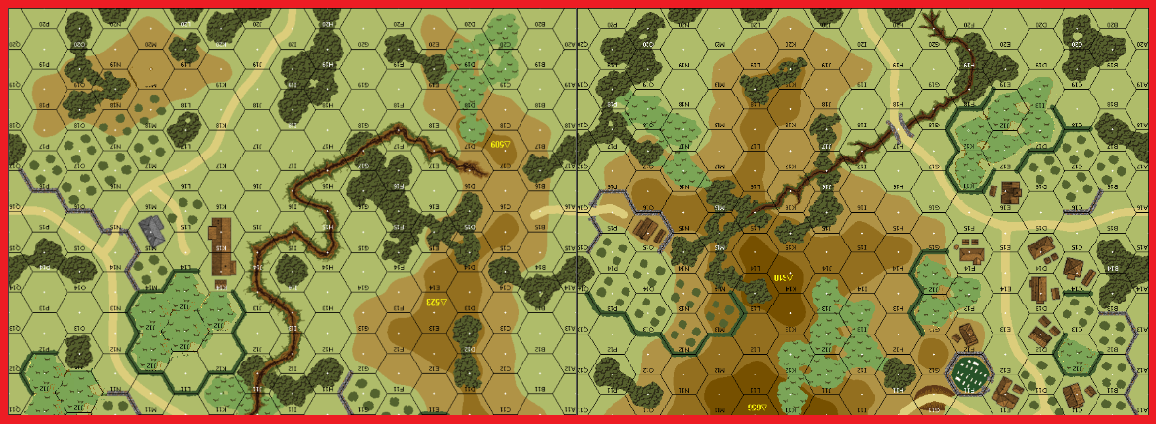 | Misc Rules: | Grain is Brush, one story buildings. Heavy Mist and additional +1 DRM all hex ranges |