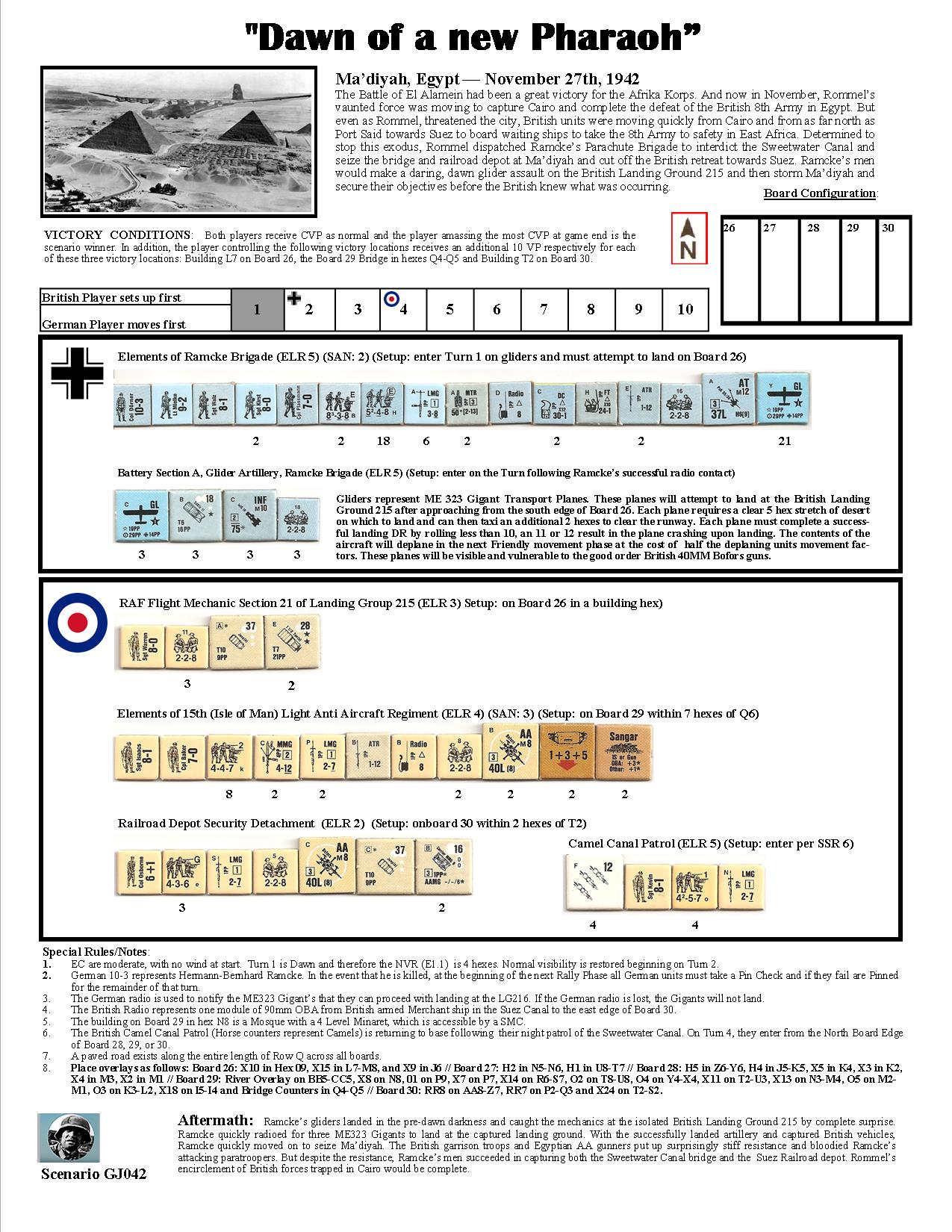 The Battle of El Alamein had been a great victory for the Afrika Korps. And now in November, Rommel’s vaunted force was moving to capture Cairo and complete the defeat of the British 8th Army in Egypt. But even as Rommel, threatened the city, British units were moving quickly from Cairo and from as far north as Port Said towards Suez to board waiting ships to take the 8th Army to safety in East Africa. Determined to stop this exodus, Rommel dispatched Ramcke’s Parachute Brigade to interdict the Sweetwater Canal and seize the bridge and railroad depot at Ma’diyah and cut off the British retreat towards Suez. Ramcke’s men would make a daring, dawn glider assault on the British Landing Ground 215 and then storm Ma’diyah and secure their objectives before the British knew what was occurring.Attacker: German (Ramcke's Brigade)