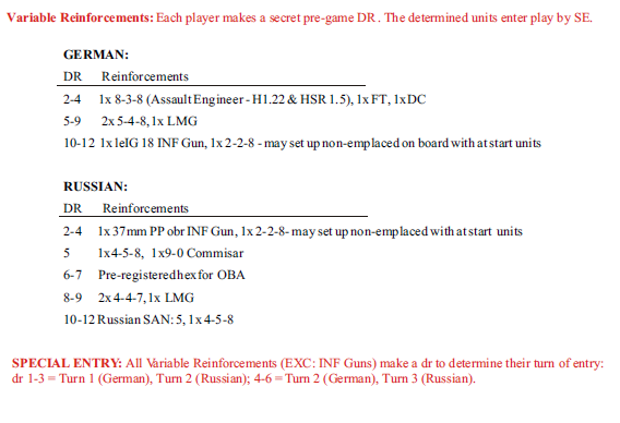 | Misc Rules: | Variable Reinforcements for both sides. Grain is in season. |