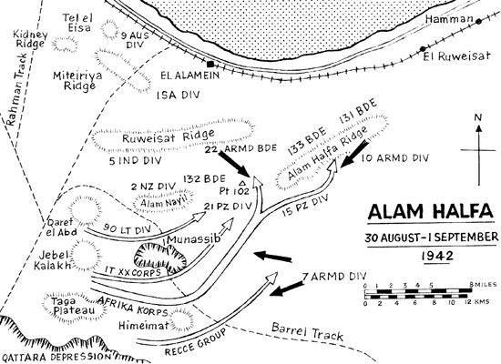 As Rommel pursued his intention of occupying the Nile delta, he attempted to outflank the EL Alamein position by capturing the Alam Halfa ridge occupied by the 22nd Armoured Brigade. The massed might of the Deutsches Afrika Korps was augmented by the first appearance of the new Panzer IV specials. The British armour was under strict orders not to fire until the enemy closed to within a 1000 yard range. Following a brisk advance the German armour halted in front of the prepared British positions. As the German armour opened fire the superiority of the new long barrelled 75mm gun became quickly apparent causing one squadron of the County of London Yeomanry to be knocked out in a matter of minutes. A dangerous gap was thus created in the centre of the Allied position.Attacker: British (1st Battalion, Rifle Brigrade and 5th Battalion, Royal Tank Regiment, 3/4 County of LondonYeomanry, 22nd Armoured Brigade, 7th Armoured Division)