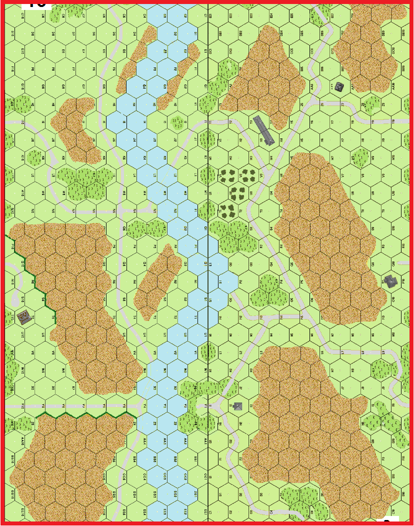 | Misc Rules: | Plowed Ground: Mud for AFVs, Bldgs: Stone, Woods: Brush |