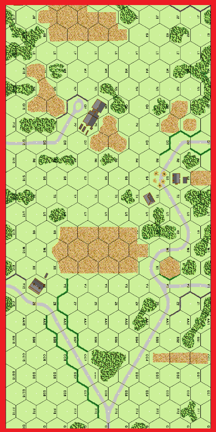 | Misc Rules: | Treat Woods as Brush. Paved Rds. Plowed Ground like Mud for AFVs |