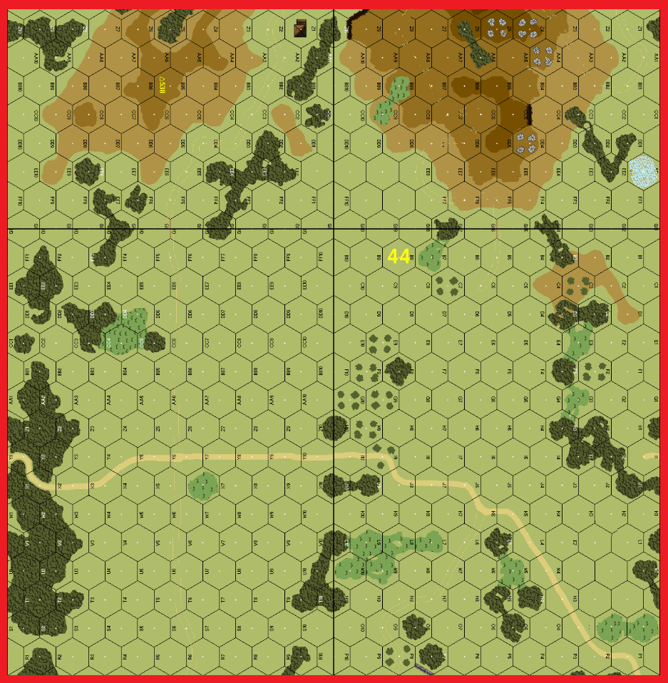 | Misc Rules: | KW Terrain. One Road. +1 LV on Turn One. D: All M41s start "unlimbered" |