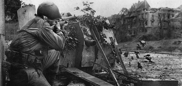 The Big Red One had been working its way into Aachen for a month. Two battalions of the 26th Infantry Regiment entered the city proper on 13 October and began grinding their way through the heart of the city. Colonel Wilck, commander of Volksgrenadier Division 246, had been put in charge of Aachen’s defense and established his command post in the Hotel Quallenhof outside Farwick Park. In response to his frantic, repeated calls for help, reinforcements in the form of SS-Bataillon Rink arrived at the hotel on 15 October, where they were quickly engaged along with Wilck’s Grenadier-Regiment 404 and some assault guns in an effort to break out against the encircling Americans. Although the counterattack pushed the Americans back, it failed to break through, whereupon Colonel Wilck and his staff left the park, the hotel, and the nearby Kurhaus to the combat troops and set up a new command post in an air raid bunker not far away.Attacker: German (SS) (SS-Bataillon Rink, Kampfgruppe Diefenthal)