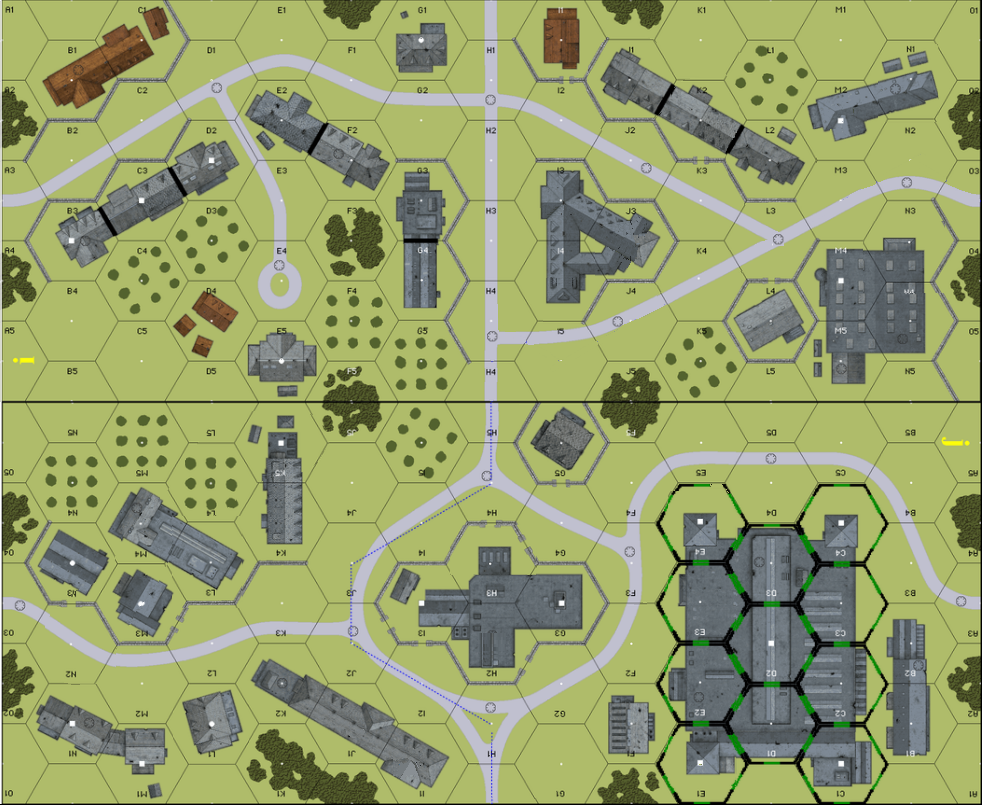 | Misc Rules: | Dawn +1 LV hindrance, all hexes of bldg jC1 are Fortified. |