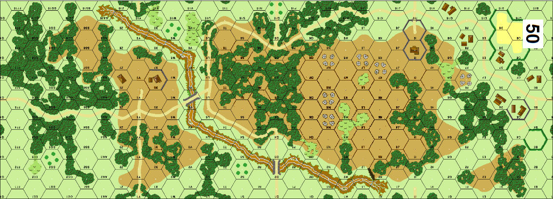 | Misc Rules: | Night rules, Stream Dry, all hills Lvl 1 only, Wood bldgs |
