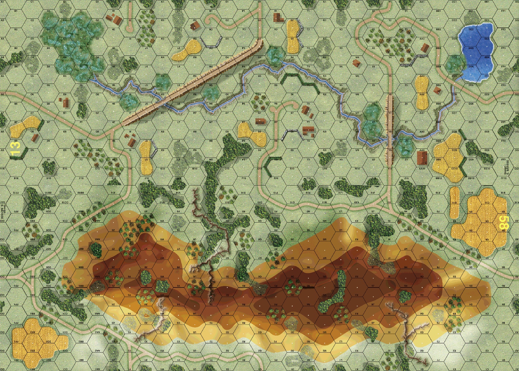 The Soviet 5th Guards Tank Corps races south during the Kursk counteroffensive exploiting a 7 mile gap between the 4th Panzer Army and Armeeabteilung Kempf. On August 3rd, General Raus’ XI Corps rushes the 167th Infantry Division and 6th Panzer Division into the gap. The stop-gap German forces are smashed by the Soviet onslaught and fall back on Belgorod. Against Hitler’s orders, Belgorod is quickly evacuated of all available German units falling back south of the city to form a new defensive front along a series of hills fronting the Vezelka River. After an opening artillery and air bombardment, the Soviet guardsman stormed south across the Vezelka River to force open the Belgorod-Kharkov Highway.Attacker: Russian (Assault elements of the 5th Tank Corps)