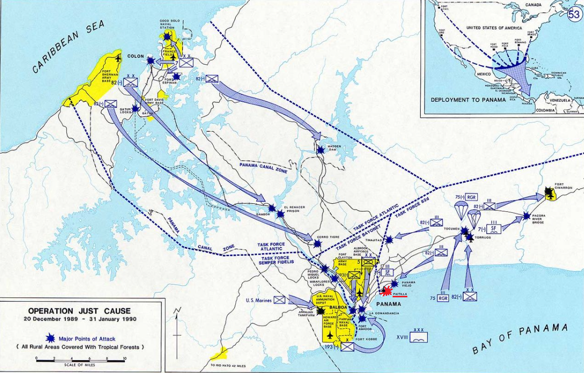 The military incursion into Panama began on 20 December 1989, at 1:00 a.m. local time. The operation involved 27,684 U.S. troops and over 300 aircraft. The operation began with an assault of strategic installations, such as the civilian Punta Paitilla Airport in Panama City and a PDF garrison and airfield at Rio Hato, where Noriega also maintained a residence. U.S. Navy SEALs destroyed Noriega's private jet and a Panamanian gunboat.Attacker: American (No more details)