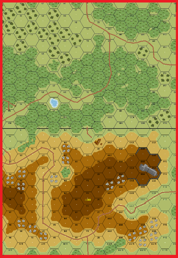 | Misc Rules: | Woods: Brush, Orchards: Olive Groves, Roads: Paths. Cliffs are Double-Crests w/ Hillside Walls |