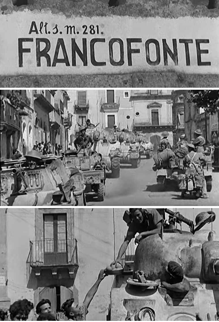 Newsreel images of triumphant Brits being welcomed in Francofonte