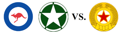 The 4-5-8s of 3rd Battalion Royal Australian Regiment and American Sherman tanks are conducting a two-pronged attack to clear the KPA 17th Tank Brigade’s dug-in T-34/85s, infantry and an SU-76m from the road and hills of boards 9 and 58.Attacker: Australian / American (Company A, 3rd Battalion Royal Australian Regiment, 27th Infantry and Company D, 89th Tank Battalion)