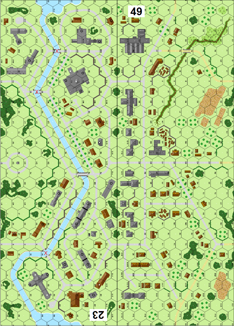 | Misc Rules: | Canal Fordable. Only 23P7 bridge exists. D: German ELR 2, Axis Italian ELR 4 |