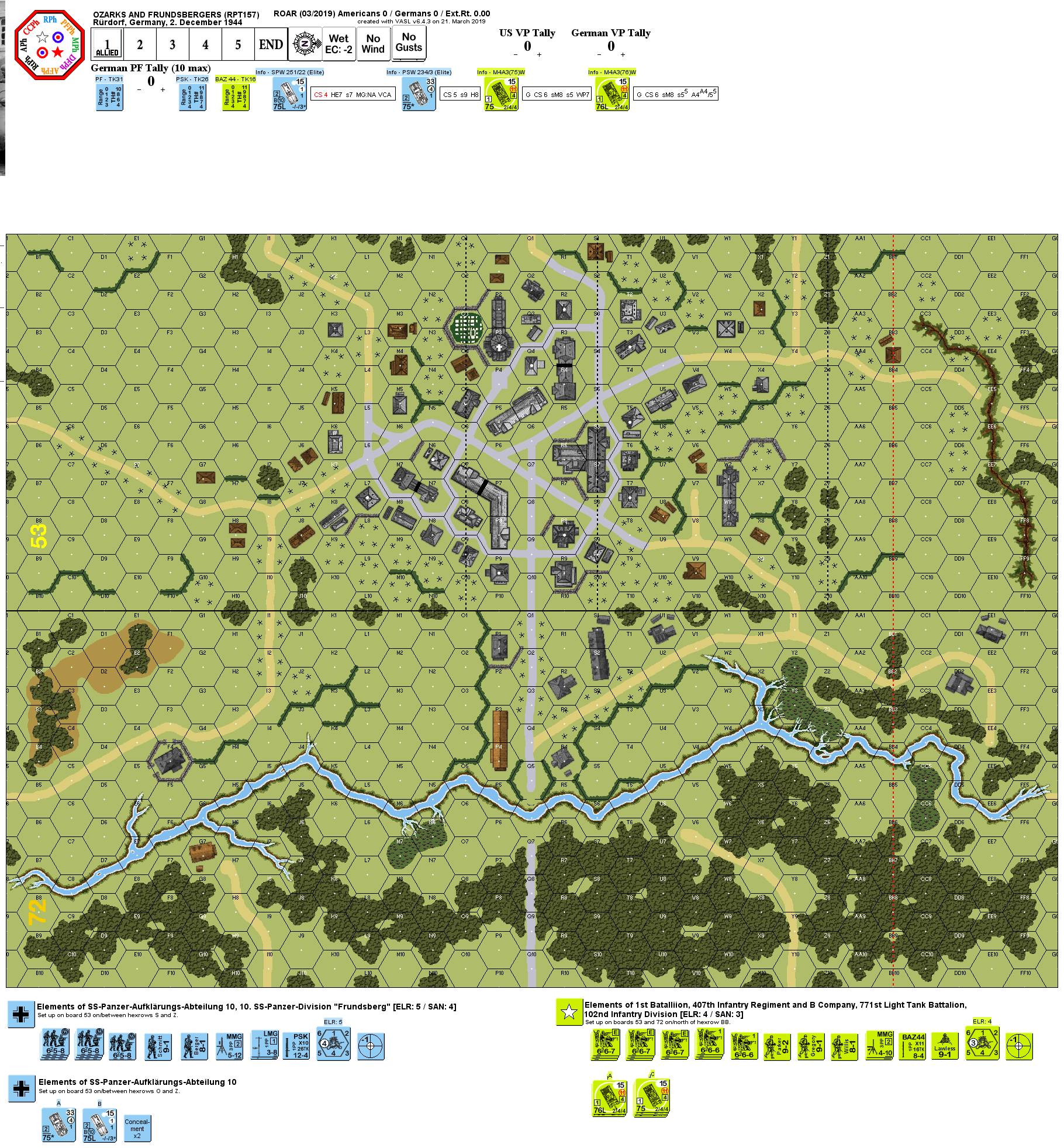 | AFVs: A:5 M4A3(75)W x 3 M4A3(76)W x 2 |