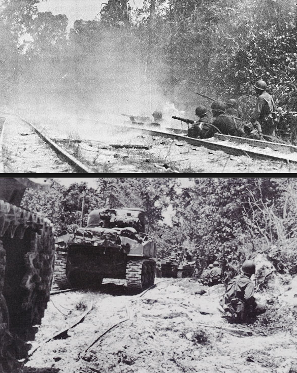 Anguar Island had been declared secure on 20 September. However, the Japanese still held out in the northwestern part of the island around Romauldo Hill. The hill had been fortified as a redoubt using interconnected caves and pillboxes. To attack the redoubt, the 322nd Regimental Combat team from the 81st “Wildcat” Infantry Division had to attack across an open-pit, phosphate mine called the “Angaur Bowl”. The attacks began on 20 September and the Wildcats quickly established a tactical pattern attacking into the difficult terrain and destroying the mutually-supporting Japanese fortifications. On September 27 the Americans were able to get tanks into the bowl along a new road bulldozed the previous day.Attacker: American (2nd Battalion, 322nd Infantry Regiment, 81st Infantry Division)