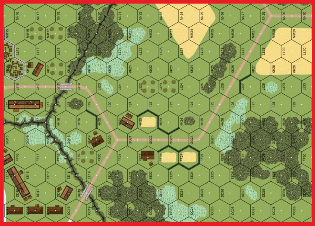 Scenario and VASL map available for free on Lone Canuck website. . .The Soviet northern hammer swung towards Minsk on 23 June with Osilovskiy Cavalry-Mechanized Group leading the way. The group’s 3-y Gvardeyskiy Mechanizirovanniy Korpus (3rd Guards Mechanized Corps) aggressively probed the German line for weak spots and rather than waiting for strong following forces, these reconnaissance units fought their way through scattered German remnants, forcing several penetration near Senno on-route to the Berezina River. Although the Germans threw together various improvised defensive positions and counterattacks, the rapid mechanized troops overwhelmed, or simply bypass them.