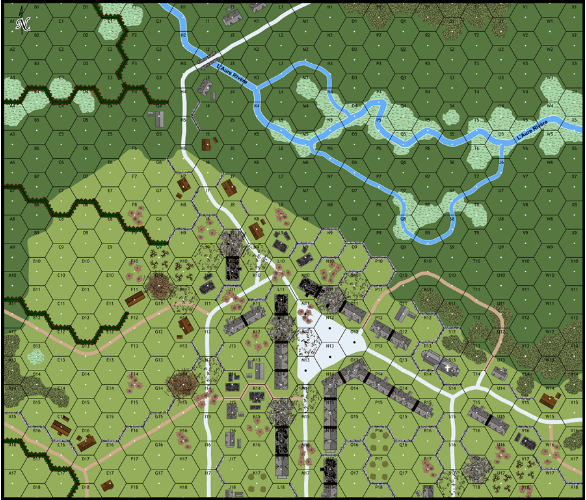| Misc Rules: | Hedgerows, Wide City Blvds, Burnt-Out Orchards, Variable OoB both sides. D: Mines, FB2 |