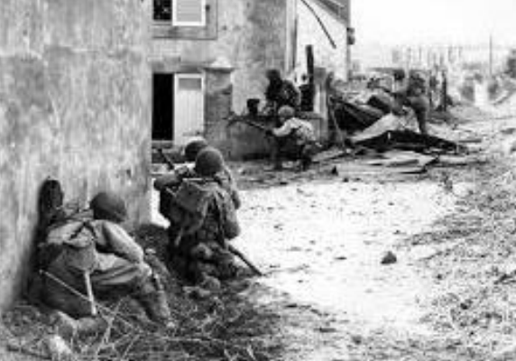 The US 38th Infantry Regiment was to strike directly at Trevières from the north and west, while the 9th Infantry Regiment would outflank Trevières by seizing Rubercy to the southeast, cutting off the German position. The village was well-sited for defense from the north as any attacker had to first traverse the river. The 9th Infantry’s attack ran into difficulties aggravated by its total lack of medium mortars and heavy machine-guns, the hedgerow terrain, and the tenacity of the German defense. The 2nd and 3rd Battalions made slow progress crossing the Aure River, being continually pinned down by German machine-gun fire. The American attack was kept moving chiefly by bold leadership. The success of the 3d Battalion in crossing the Aure River under heavy machine-gun fire was due at least in part to the courage of Captain Omery C. Weathers of Company K who lead his men through the fire at the cost of his own life. Late in the afternoon the regiment, still short of its objective, was ordered to continue the attack to take Trevières that night.Attacker: American (Elements 3rd Battalion, 38th Infantry Regiment)