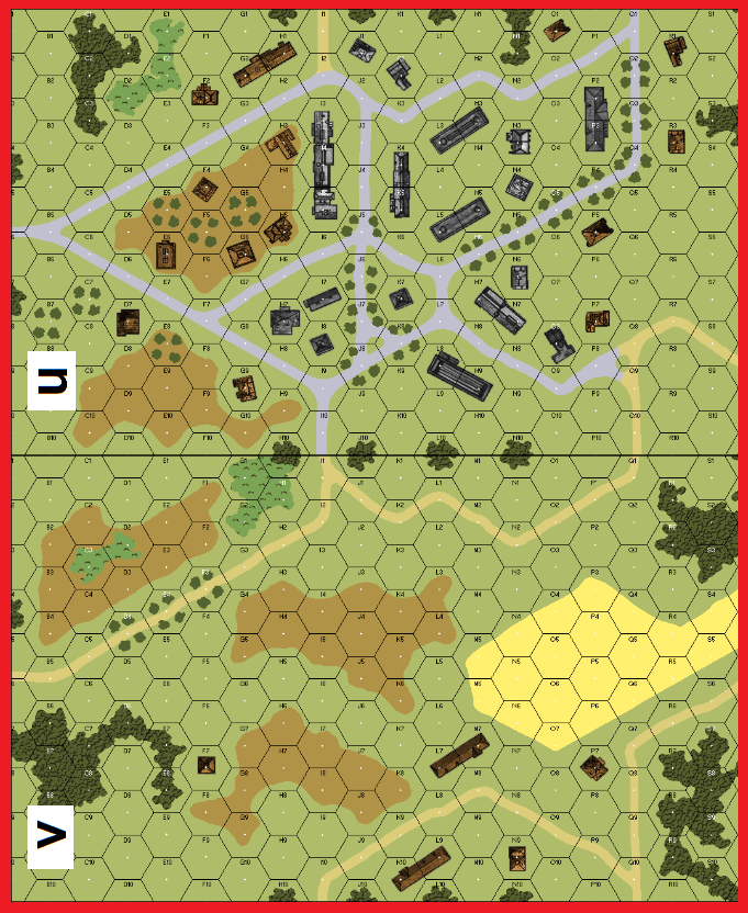| Misc Rules: | A: American AFVs may only move along paved and unpaved road hexes |