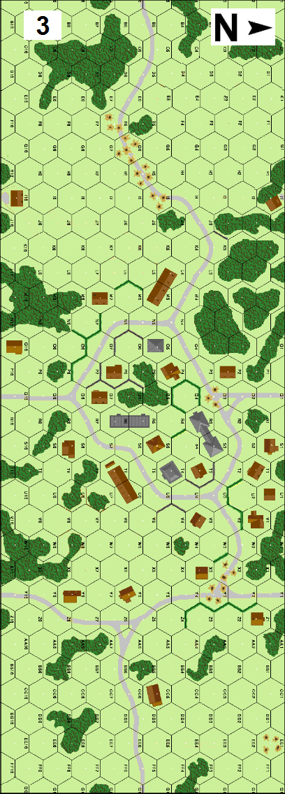 | Misc Rules: | Pine Woods (B13.8). All roads paved. No hills. A: enter as Passengers |