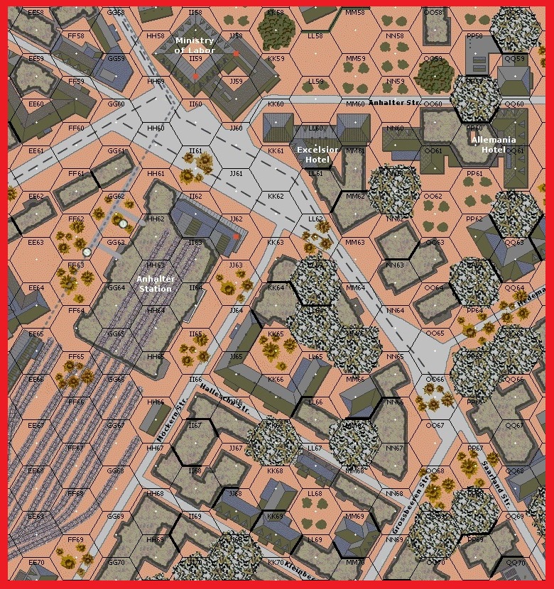 Once the Landwehr Kanalline had been breached the next assignment for The 9th Rifle Corps was to capture the Anhalter Railway Station. Moving up Saarlandstrasse the first echelon encountered stiff German resistance coming from the fortified Cristus Church and the nearby post office. As these positions were being reduced the 11th SS Panzer Grenadier Division launched a counter attack supported by some of the last running King Tiger tanks in Berlin. Supported by the 92nd Guards Tank Regiment the Soviet troops were able to defeat the counter attack. The German tanks crawled back into the rubble and the 9th Corps reached the station.Attacker: Russian (9th Rifle Corps)