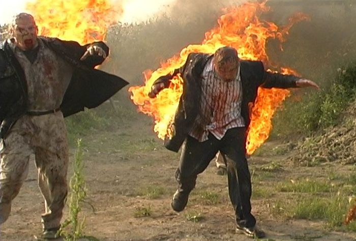The picture was changing rapidly. Smaller cities and towns were dropping off the radar screen daily, and in ever increasing numbers. The Ohio National Guard got their orders. They were to proceed to the town of Shawnee, where an outbreak of zombie infestation was occurring, and render any assistance they could to the town's people. The Guards loaded up at the armory, and having their choice of weapons, they chose the flame throwers. "Screw shootin'em in the head, I'm gonna torch'em"> The men joked they were the "Matchstick Men of the Fighting O". What someone forgot to tell them was they were going into an area severely hit by a summer drought. . . and a "Matchstick" might not be the best thing to be.Attacker: Humans (Ohio National Guard)