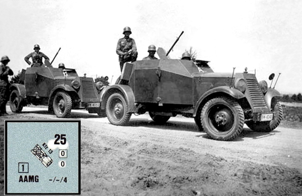 | AFVs: A:3 PSW 222 Kfz 13 x 2 Opel Blitz Motorcycle x 8 |