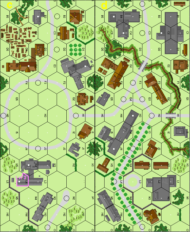 At the end of September, units of the Rodimtsev’s 13th Guards were ordered to occupy the buildings at Lenin Square and form strategic points. A damaged apartment was attacked and occupied by Sgt. Jacob Pavlov and his men, who formed a defensive position with some meager reinforcements. The German line of advance on the Volga, which was stopped short by only 250 meters, was subjected to frequent attacks. On 20 October the Germans tried to complete the conquest of the city and launched one of the most severe attacks on the house occupied by Pavlov. . . .SPECIAL RULES: 1) Weather conditions are normal, no wind. . . 2) The hexes of dL5, cK2, cM1 and buildings cG3 and cL1 are to be considered open ground. . . .3) Hex cL4 has a Level 3 .... 4) All Russian units are to be considered fanatics regardless of their disposition. . . .5) Neither party may deliberately start fires. . . . VICTORY CONDITIONS: The player with the most squads or equivalent in the cK3 building at the end of the game is the winner. If both players have the same number of squads, the Russian player wins.Attacker: German (Assault Group of the 6th Army)