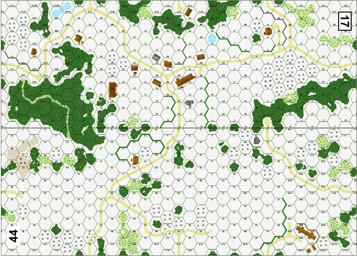 | Misc Rules: | GS, plowed roads. D: Germans may fortify one building Location; Tunnel exchange is NA. |