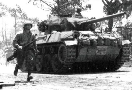 Many of the Japanese troops defending Clark Field were less than front-line quality. Lieutenant Colonel Seikuke Eguchi, however, scrounged for them every available machine gun from the destroyed aircraft littering the runways. As the remains of Kembu Group were being pushed into the foothills of the Zambales Mountains, Eguchi decided to counterattack. After clearing Clark Field, the “Battling Buckeyes” of the 37th pushed into the ruins of Fort Scotsenberg. On the morning of the 29th, Eguchi’s infantry hit the American defenses, and were repulsed. Another counterattack led by six tanks of the Yanagimoto Detachment struck the right flank at Barrio Tacondo.Attacker: Japanese (Eguchi Detachment with Yanagimoto Detachment)