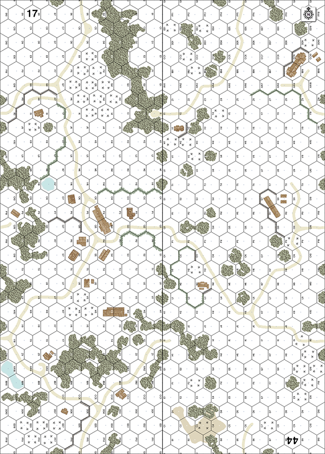 Misc Rules: GS (E3.72), DS (E3.73). All roads dirt. Bldgs: Wooden. A: AS (A19.131), EW (E3.74).