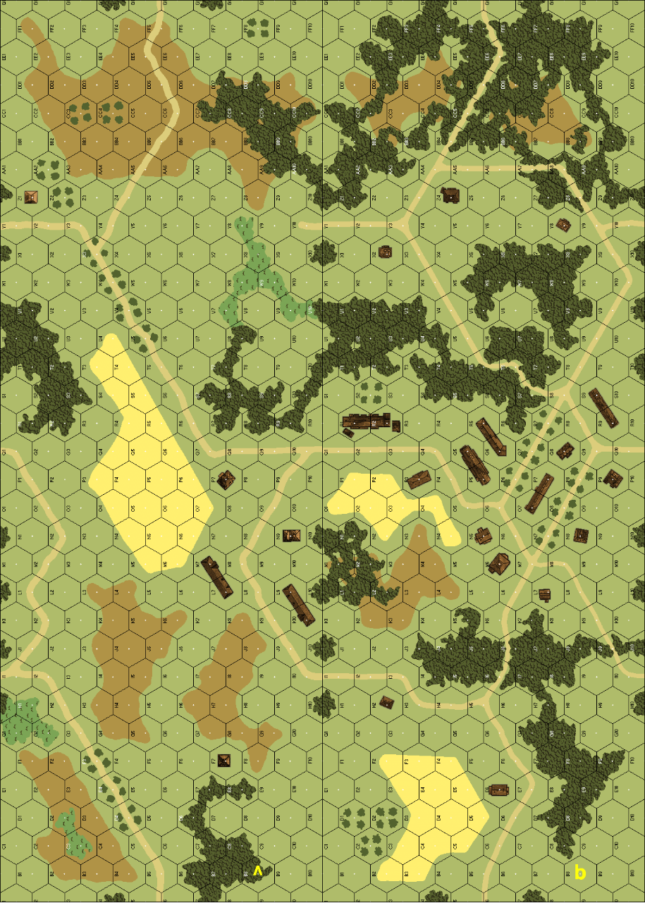 | Misc Rules: | Woods: +2 Hindrance to same-level fire, D: Low Ammo SW/Guns B11/X12 |