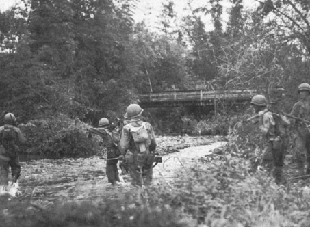 After clearing the Japanese defenders from the Ormoc area, General Bruce’s plan for the next phase was to envelope the enemy from the west with the 306th and 307th Infantry. The 306th Infantry moved out at 0630. Short of ammo, the 1st Battalion delayed departure to await the arrival of E Company with additional ammo. At 1250, having resupplied, the battalion moved out and at 1330 secured the ridge overlooking the bridge over the Pagsangahan River. General Bruce ordered the battalion to push west along the Palompon road to secure the bridge.Attacker: Japanese (Elements of the 1st Battalion, 5th Infantry Regiment, Japanese 35th Army)