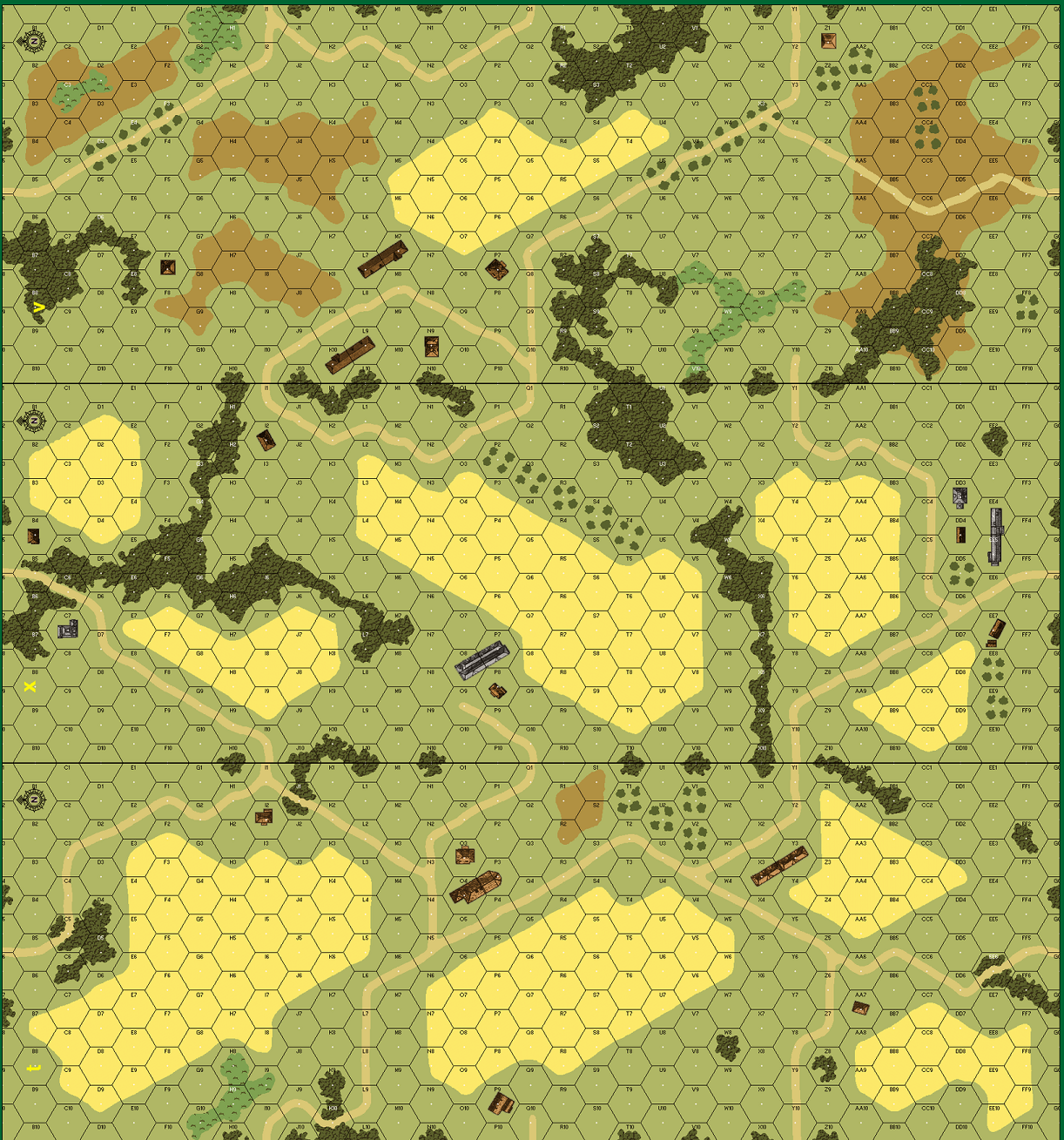| Misc Rules: | Artillery Strikes (SSR3). A: 548 and D: 628 have Smoke Exponent (1.2.2) increased by 2. |