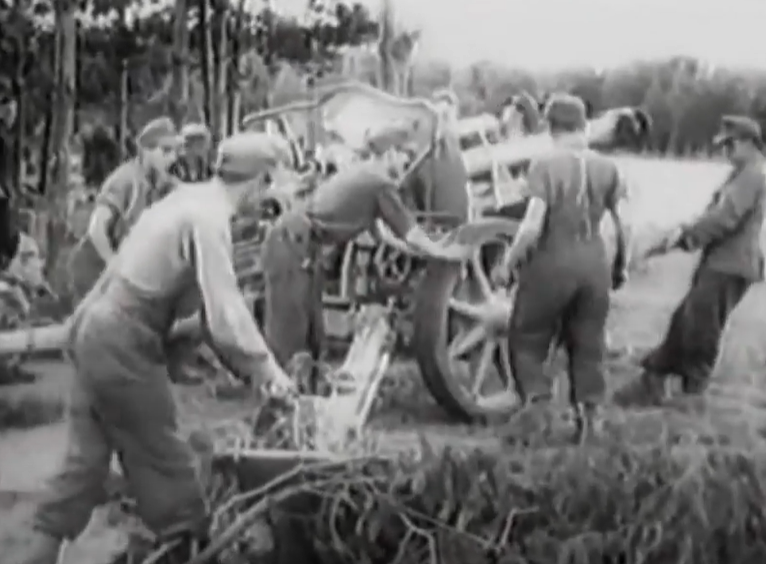While Allied Planners had successfully identified German artillery batteries such as the one located at Brecourt Manor, they had in fact not identified a sister battery near the hamlet of Holdy. Located below Saint Marie du Mont, Holdy was a battery of for 105 guns sited to fire over Brucheville to lay fire on Exit No. 1, Utah Beach near Pouppeville. Several American paratroopers would land directly over the battery and be killed, captured and put to death. 502nd Paratroopers engaged with the battery in the early morning hours, but had withdrawn. As the sunrise, Captain Lloyd E. Patch 1/506th and Captain Knut H. Raudstein with his C Company troopers came on the scene and tipped the balance, as the Americans assaulted the battery.Attacker: American (1/506th Airborne Regt., 101st Airborne Division)
